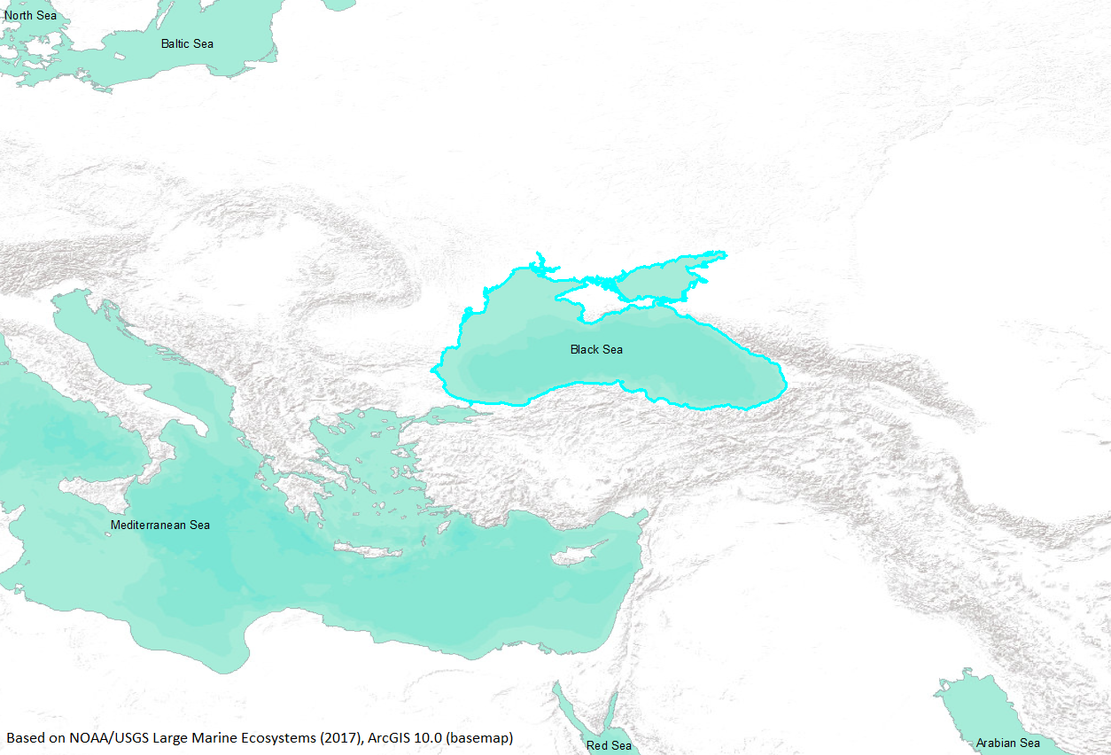 The Black Sea is a largely closed water body that receives a significant proportion of its surficial inputs as fresh water from the Danube, Dnepr, Dnestr, Don, and Kuban Rivers.( Balkas, et al., 1990) The Mediterranean contributes marine water and fauna through the narrow Bosporus Strait. (Caddy, 1993). The Black Sea is characterized by a narrow continental shelf, with the widest shelf and most productive area in the Sea of Azov. (Caddy, 1993) The Black Sea is characterized by stratification and poor flushing. (Caddy, 1993) Because of bathymetry and stratification (Balkas, et al., 1990), the lower part of the water column has recently consisted of unoxygenated water with well-developed stratification. The upper shelf water may have suffered low-oxygen episodes recently. (Caddy, 1993). Reductions in freshwater flow, especially due to irrigation, have had a major effect on estuarine fauna of the Black Sea. (Ivanov and Beverton, 1985) (http://www.na.nmfs.gov/lme/text/lme62.htm). |