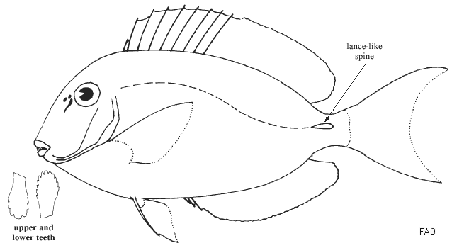 | Randall, J.E. 2003. Acanthuridae. Surgeonfishes. p. 1801-1805. In K.E. Carpenter (ed.) FAO species identification guide for fishery purposes. The living marine resources of the Western Central Atlantic. Vol. 3: Bony fishes part 2 (Opistognathidae to Molidae), sea turtles and marine mammals. Ref No [52966] Key No. [1091] |