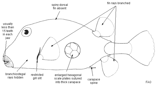 | Matsuura, K. 2003. Ostraciidae. Boxfishes (trunkfishes, cowfishes). p. 1980-1987. In K.E. Carpenter (ed.) FAO species identification guide for fishery purposes. The living marine resources of the Western Central Atlantic. Vol. 3: Bony fishes part 2 (Opistognathidae to Molidae), sea turtles and marine mammals. Ref No [53032] Key No. [1108] |