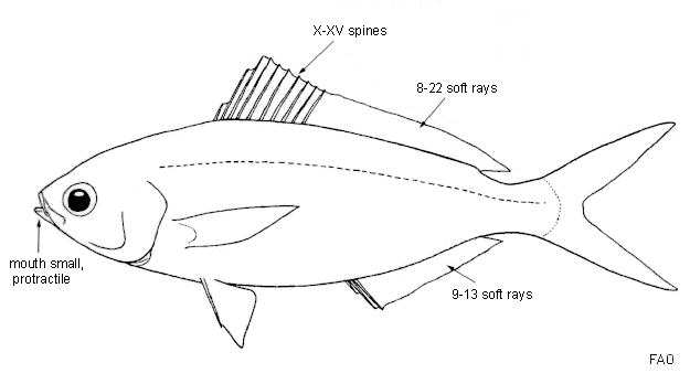 | Carpenter, K.E. 1997. Caesionidae. Fusiliers. In K.E. Carpenter and V. Niem (eds.) FAO identification guide for fishery purposes. The Western Central Pacific. Ref No [12853] Key No. [743] |