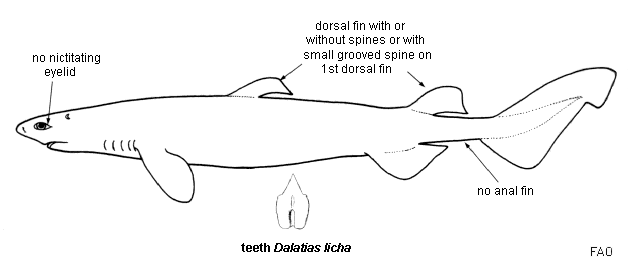 | Compagno, L.J.V. 2003. Dalatiidae. Kitefin sharks. p. 410-414. In K.E. Carpenter (ed.) FAO species identification guide for fishery purposes. The living marine resources of the Western Central Atlantic. Vol. 1: Introduction, molluscs, crustaceans, hagfishes, sharks, batoid fishes, and chimaeras. Ref No [49828] Key No. [874] |