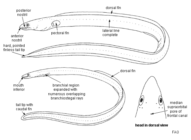 | McCosker, J.E. 2003. Ophichthidae. Snake eels (shrimp eels, worm eels, and sand eels). p. 724-733. In K.E. Carpenter (ed.) FAO species identification guide for fishery purposes. The living marine resources of the Western Central Atlantic. Vol. 2: Bony fishes part 1 (Acipenseridae to Grammatidae). Ref No [50429] Key No. [907] |