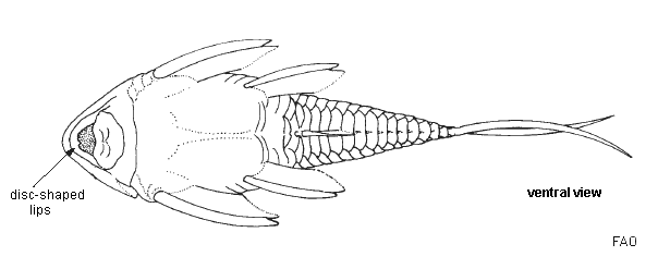 | Ferraris, C.J. Jr. 2003. Loricariidae. Suckermouth, armoured catfishes (mailed catfishes, plated catfishes). p. 864-865. In K.E. Carpenter (ed.) FAO species identification guide for fishery purposes. The living marine resources of the Western Central Atlantic. Vol. 2: Bony fishes part 1 (Acipenseridae to Grammatidae). Ref No [50684] Key No. [920] |