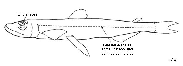 | Key to the genera (adults only) of pearleyes (Scopelarchidae) occurring in the Western Central Atlantic. |