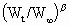 A plot of Q/B vs. W¥