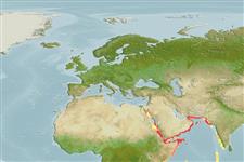 Western Indian Ocean: Dahlak Archipelago, Gulf of Suez, Gulf of Aqaba, and has been collected in the central Red Sea. It is not clear whether there are two separate populations, one of the deep water (360-380 m) and one of the deep sea (1085-1120 m) or whether vertical migrations of 700 m or more take place. Gene flow occurs between the Gulf of Aden, the Red Sea, and the Gulf of Aqaba.