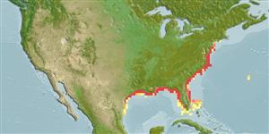 Western Atlantic: Massachusetts to Florida, (not Florida Keys), Everglade City, Florida along Gulf of Mexico coast to Veracruz, Mexico.