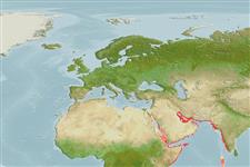 Western Indian Ocean: known only from the Persian Gulf from Kuwait to Musandam. Reported from Mentawai Islands, eastern Indian Ocean.